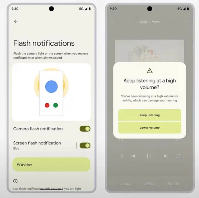 ক্যামেরা ফ্ল্যাশ নোটিফিকেশন এবং লং ভলিউম অ্যালার্ট